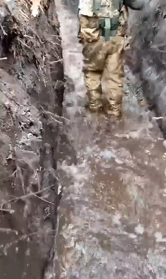 在焦点战场巴赫穆特,春天的到来让乌军战壕变成了水流潺潺的小溪,战斗条件愈发艰苦。