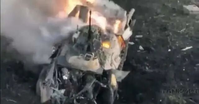 俄罗斯BTR-82在对Vuhledar的袭击中被地雷炸毁,指挥官和司机都挂了。
