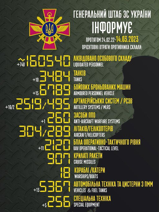昨日俄军在各条战线上共计减员740人,此外还有10辆坦克、15辆装甲运兵车、16门火炮、2套多管火箭炮、1套防空系统,以及11架无人机遭摧毁。