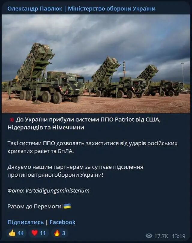 乌克兰政府宣布,所有承诺的来自荷兰、美国和德国的爱国者防空系统已经抵达乌克兰。