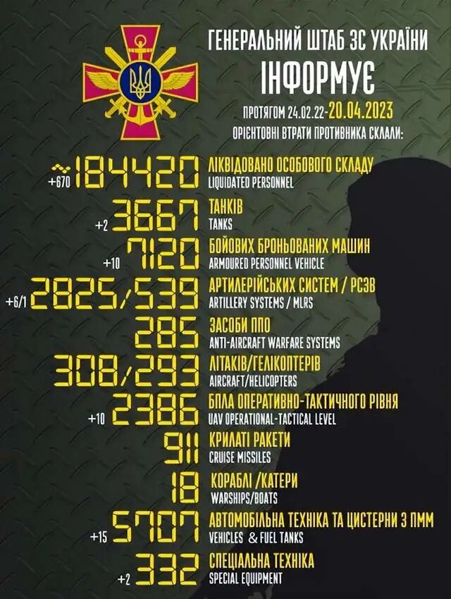 2023年4月21日,俄乌战争进入第422天。