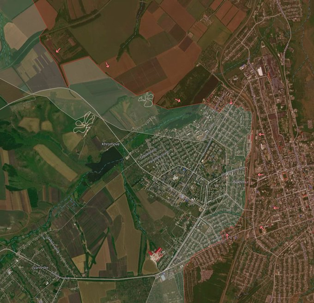 DeepState的最新地图显示,俄军和瓦格纳部队已经非常接近连接这条连接巴赫穆特和Chasiv Yar公路。