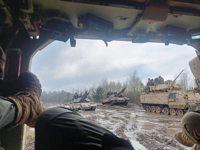 乌军新组建的第82空中突击旅,在乌克兰训练场的某个地方驾驶着Stryker ICV。