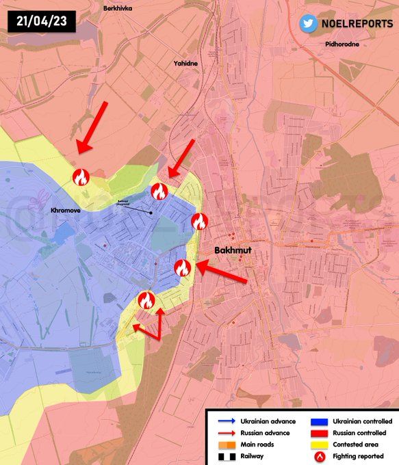 在具体的战况上,峨眉称俄军正在收缩巴赫穆特包围圈,但事实并非如此,昨日俄军在Khromove附近对O0506的大规模攻击被击退。尽管不断袭击和炮轰,但几个星期来俄罗斯人没有在此方向取得任何重大进展。不过O0506已经很少使用了,因为它处于俄军炮击之下,已经变得太危险了,目前乌军的补给主要是从南部经Ivanivske进入巴赫穆特。