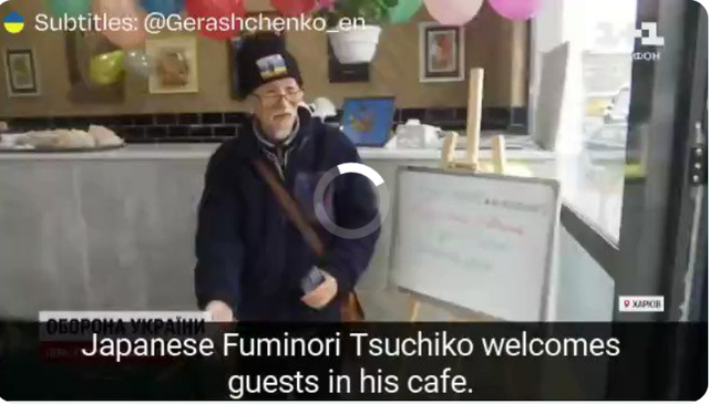 75岁的日本老人Fuminori Tsuchiko在Kharkiv开设了免费咖啡馆,向所有人提供免费的食物。