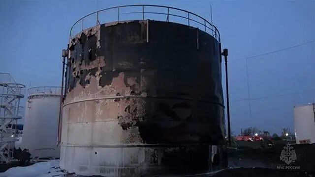 差不多在同一时间,一架无人机袭击了靠近俄罗斯边境的Rovenky地区的一个油库,俄军一辆装有军用柴油的坦克被烧毁。