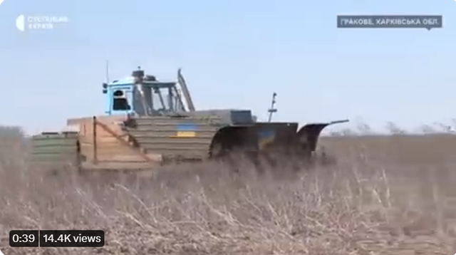 乌克兰人民发明了装甲拖拉机,可以在被俄军埋了雷的农田里正常劳作。