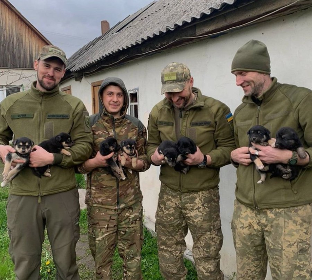 莱曼前线的乌克兰士兵救出了8只幼小的狗狗。