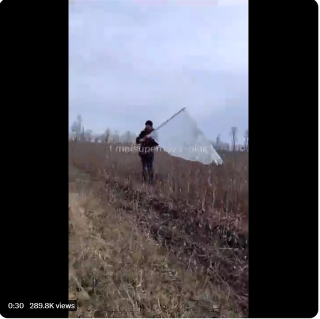 乌克兰士兵在野外碰到了一个举着白旗前来投降的俄罗斯士兵。