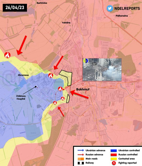 在城市的西北地区,俄罗斯消息来源声称儿童医院有进一步进展,但这尚未得到证实。总体来看过去两天巴赫穆特市区的战线变化非常小。