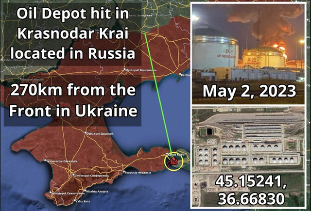 乌克兰军队昨天又袭击了位于俄罗斯境内的一个大型油库,地点在克里米亚大桥以东7公里,距乌克兰前线270公里。