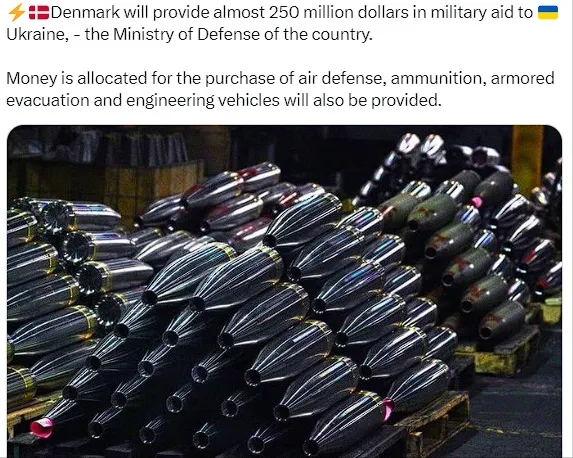 丹麦将向乌克兰国防部提供近 2.5 亿美元的军事援助, 还将拨款用于购买防空、弹药、装甲疏散和工程车辆。