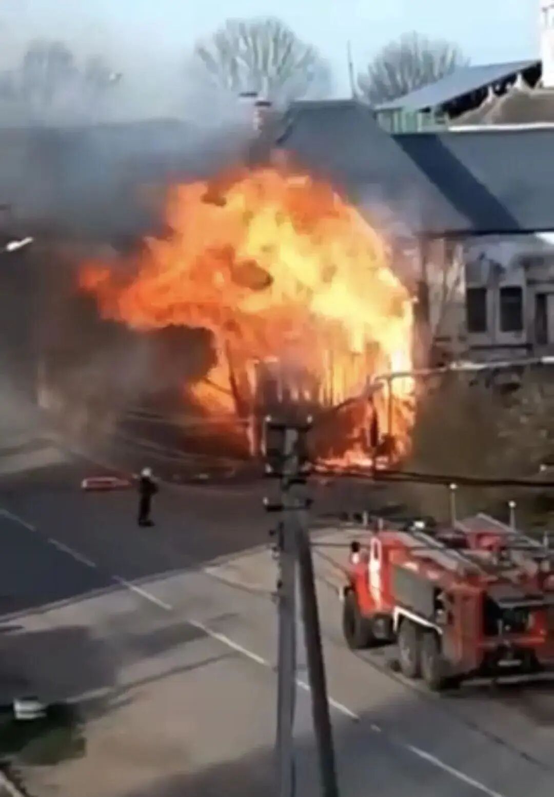 俄罗斯诺夫哥罗德州瓦尔代市一处军营着火。