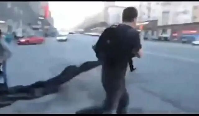 在俄罗斯著名的特维尔大街,一群市民突然跑出来拉横幅——写了什么我就不展示了。。。