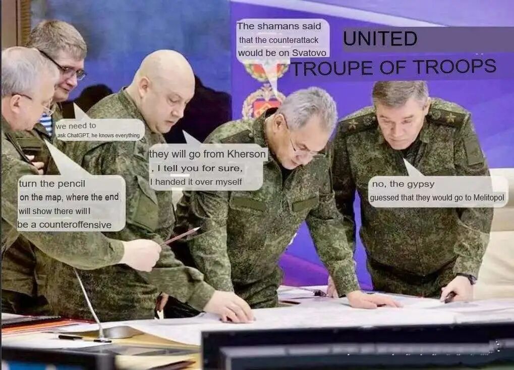 小蓝鸟上有一张很有意思的图片,俄军指挥部里现在真可能跟这个差不多: