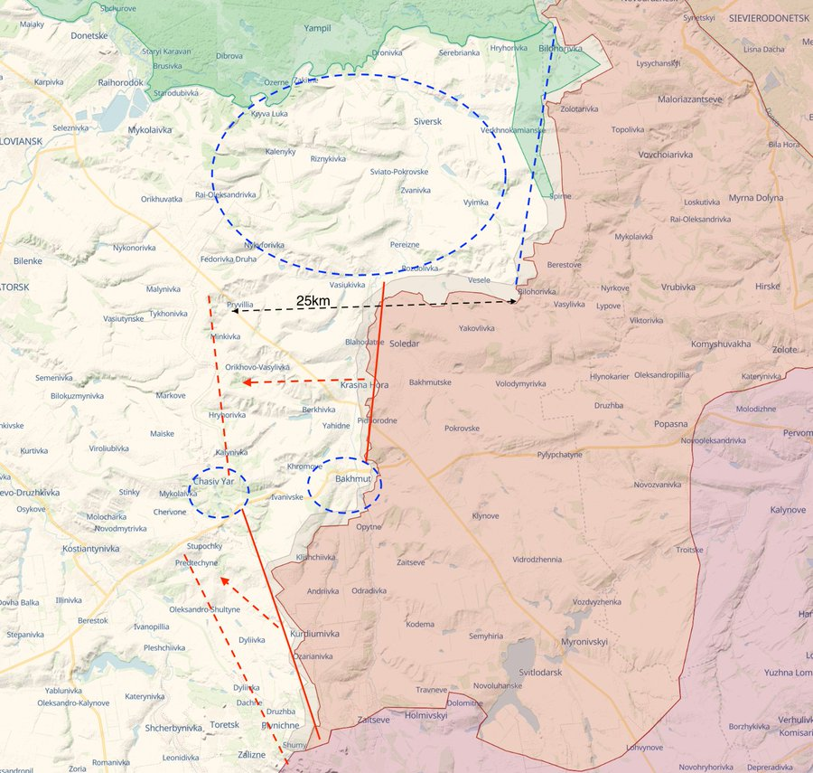 在 Khromove 附近,乌军重新获得了对 O0506 的完全控制,惧怕被包围的俄军大幅撤退3公里至berkhivka水库附近。换句话说,从北翼包抄的俄军又回到了一个月前的出发点;