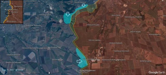 目前乌军正沿着运河向南,朝着K村(Klishchiivka)西部移动。这里的开阔地带已被俄军遗弃。俄军最精锐的VDV部队已撤回到K村西侧的高地以稳定局势。