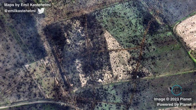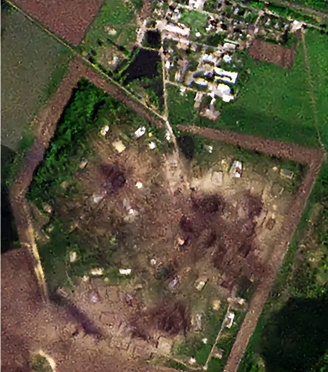 从此前的卫星图来看,那地方挖了简易掩体,还拉了铁丝网,但并无多少地面建筑。