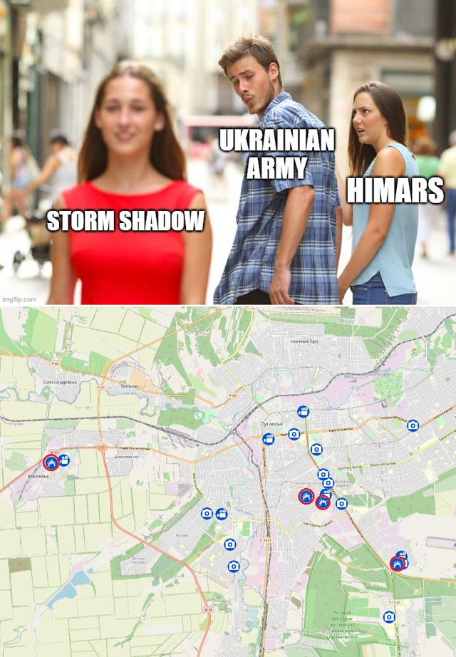 由于最近在卢甘斯克的袭击,俄罗斯人开始思考如何处理“风暴阴影"打击范围内(300公里)的重要基地。这与去年海马斯进入战场时的讨论是一样的,那一次他们最后在赫尔松市遭遇了决定性的失败。