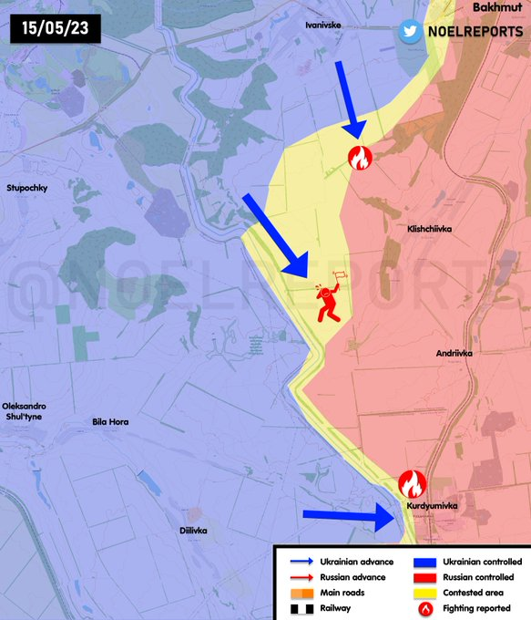 俄罗斯向Klishchiivka(巴赫穆特南部)派遣了一些增援部队,因为乌克兰人正在猛攻Klishchiivka西部的高地,一旦打下来,俄军在Klishchiivka的防线基本就废了。