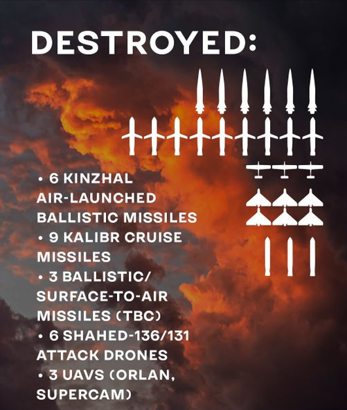 俄军战机向基辅发射了6枚匕首和9枚口径巡航导弹,3枚S-400导弹,以及6架沙赫德无人机。
