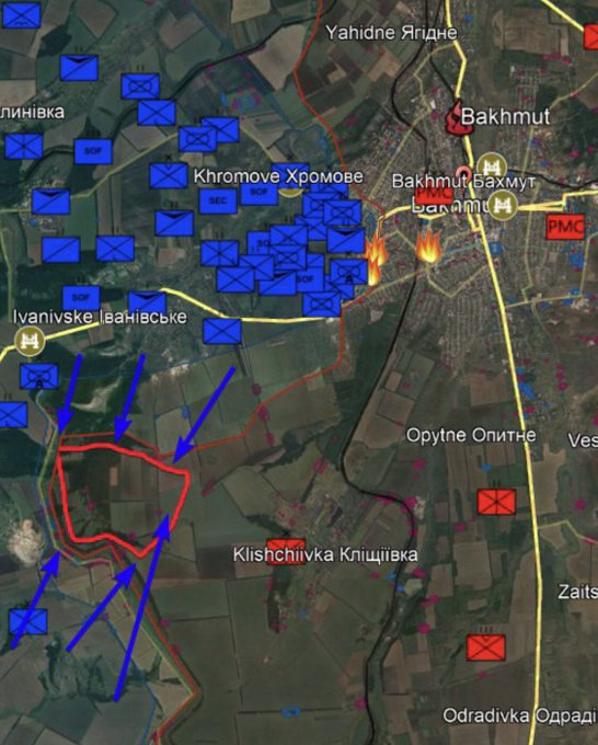在巴赫穆特方向,乌军继续在南北两翼推进。