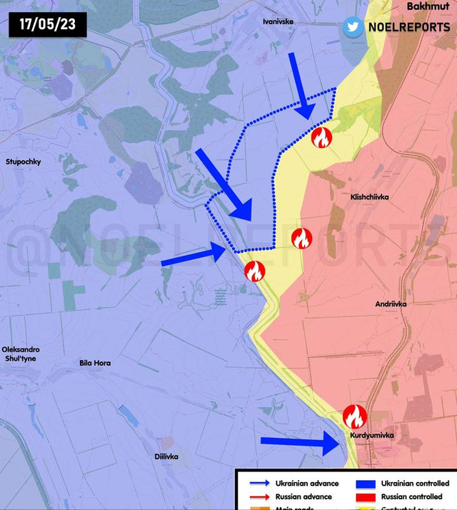 在巴赫穆特以北,乌军在Orikhovo-Vasylivka附近用一次局部反击,击退了俄军并抓了一批俘虏。