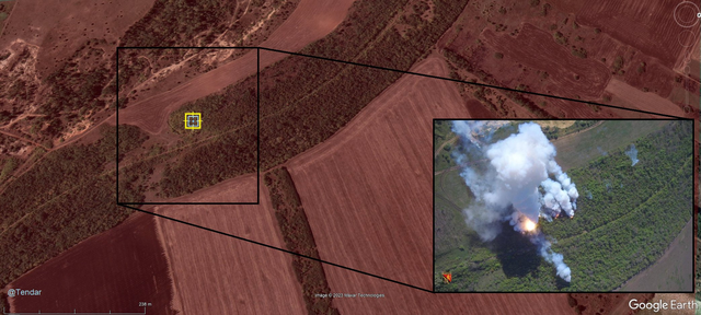 俄罗斯一套山毛榉M1/2防空系统在波帕纳斯附近被一架乌克兰无人机发现,随后被HIMARS/M270 的一枚GMLRS摧毁。