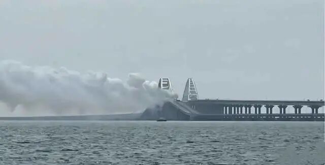 在克里米亚方向,刻赤海峡大桥冒起了白烟,据说是俄军自己放的,目的是演练用白烟来迷惑乌军的导弹。