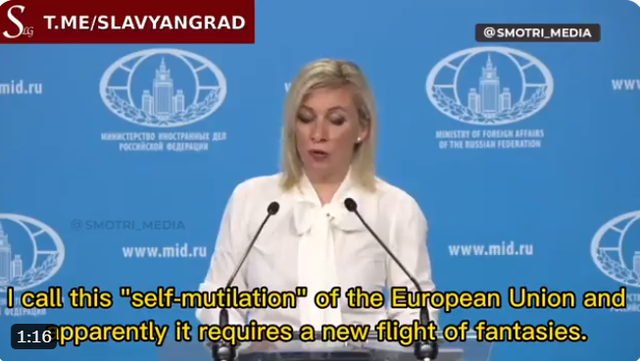 俄罗斯交部发言人扎哈罗娃在记者会上表示,欧盟对俄罗斯实施第 11 套制裁措施,并不能够伤害俄罗斯。相反,只能破坏欧洲国家的经济,让俄罗斯越来越强大。