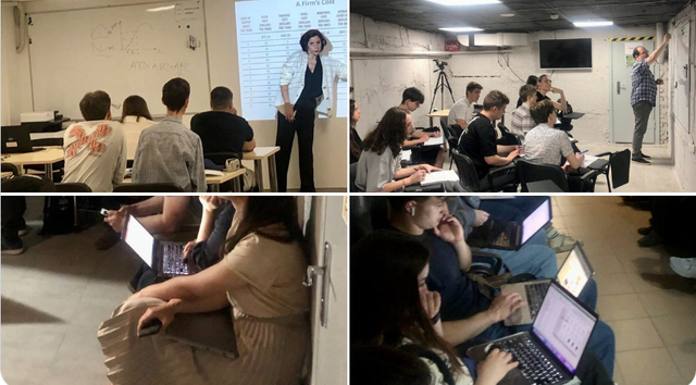 基辅遭受导弹袭击时,基辅大学经济学院的学生在避难所里坚持上课。
