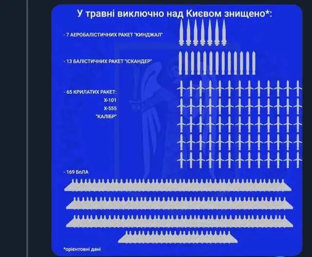 一个月之内,基辅受到了7枚高超音速匕首导弹、13枚伊斯坎德尔弹道导弹、65枚巡航导弹、和169架自杀式无人机袭击。但这座千年古城在敌人的狂轰滥炸之下始终屹立不倒,先进的防空系统,加上防空部队夜以继日的工作,几乎摧毁了来犯的全部导弹和无人机。