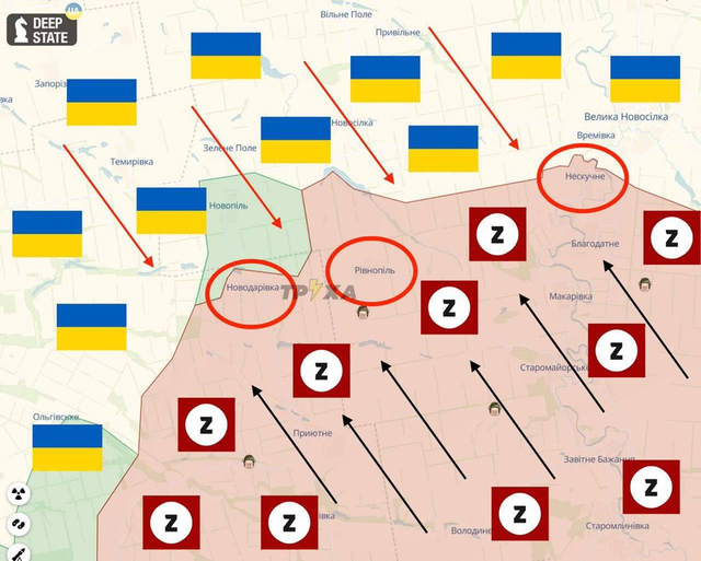 根据多方消息,乌军在顿涅茨克率先吹响了大反攻的序曲,地点在距离武勒达尔不远的Vremivka 和Velyka Novosilk之间,并已经收复了第一座村镇——novodonetske。