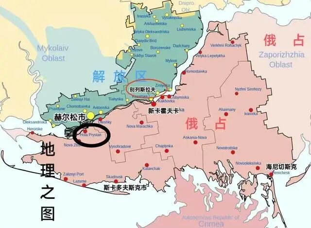 在赫尔松方向,第聂伯河的洪水已经消停,乌军再次开始向左岸地区渗透.,据说侦察队昨天已经在Hola Prystan(下图黑圈处)登陆。此外,乌军昨天夜间突然进攻新霍卡夫卡,目前战斗在进行中。