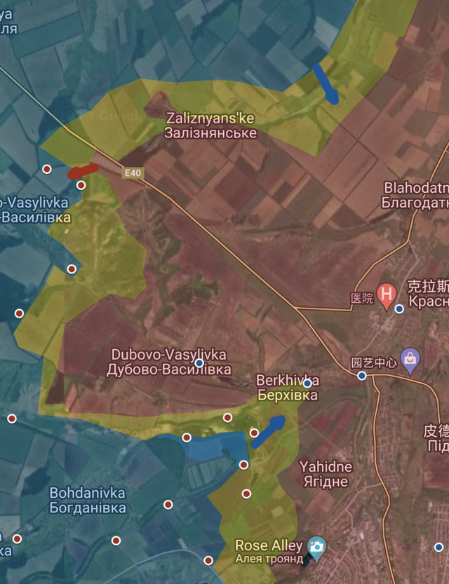 乌克兰部队击溃了俄军增援上来的后备部队在Vesele、Rozdolivka 和 Orikhovo-Vasylivka 的攻击,并开始向Berkhivka发动进攻,目标是确保对沿这条北轴线的战术高地的控制,以便进一步向Yahidne推进。