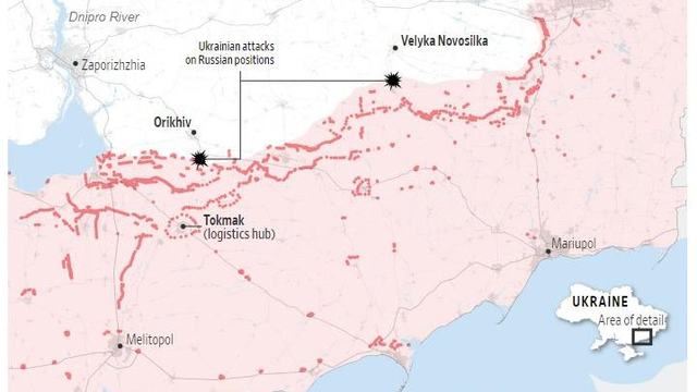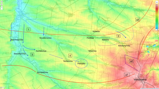 此外,从前天开始,乌军在武勒达尔附近展开反击,从另一个方向向沃尔诺瓦哈(Volnovakha)进军。