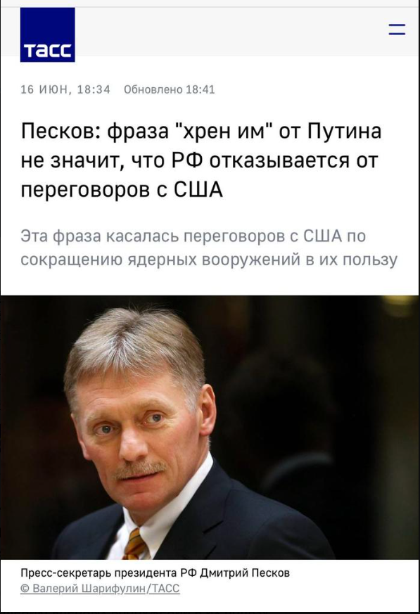 "普京总统说的并不意味着莫斯科拒绝与华盛顿进行这样的对话,俄罗斯准备进行谈判“。