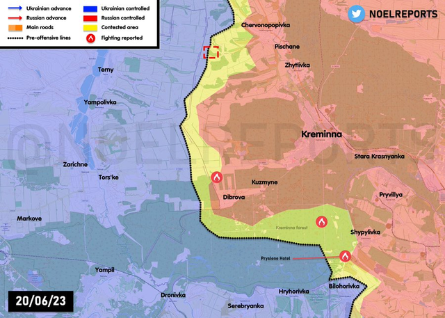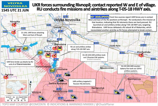 此方向的一路乌军与从西面而来的一路乌军正在对Rivnopil的俄军阵地进行两面夹击。