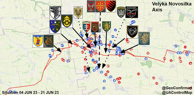 根据最新的卫星定位,乌军在大诺沃西尔卡方向已经集结了大量的部队: