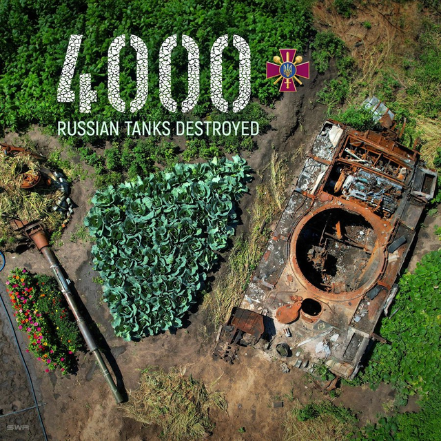 乌克兰国防部发图文纪念摧毁俄军坦克突破4000辆。
