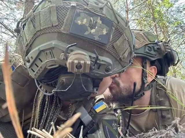 一对夫妻在不同的单位服役,他们在战场上重逢并拍下这张意义非凡的照片。