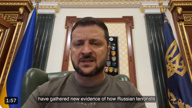 在讲话的最后,泽连斯基呼吁世界对此采取行动,他说:
