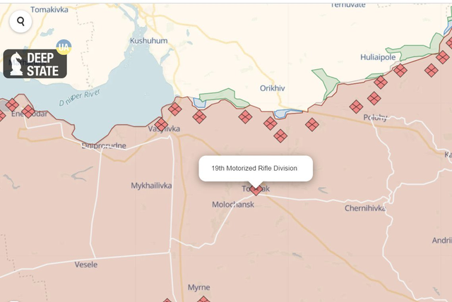 注意,托克马克市是俄罗斯58集团军第19MRD师的师部所在地。
