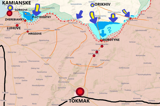 从卫星地图来看,俄军在此方面的防御工事明显逊于托克马克一线,乌军极有可能率先在这里取得突破。