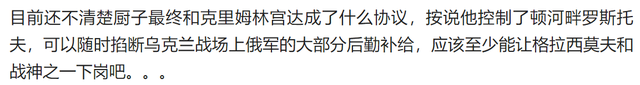 个人猜测,普里戈津留下这个后手,应该是在等待克里姆林宫兑现双方达成的协议。具体点说,就是我在昨天的战报中提到的国防部的人事问题。
