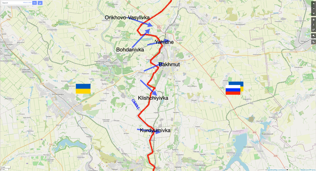在巴赫穆特地区,昨日乌军发动6路反击,并在Orikhovo-Vasylivka, Bakhmut, Bohdanivka, Yahidne, Klishchiyivka, Kurdyumivka等方向取得了全面进展。