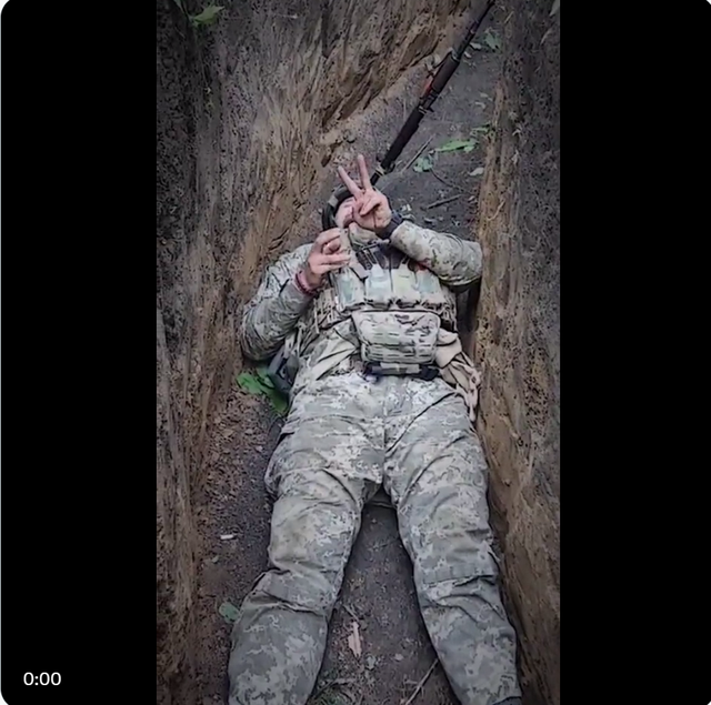 在一次不成功的进攻后,1名身受重伤的俄军士兵看到身边的战友无人生还,选择朝自己脑袋开了一枪的方式告别了这个世界。