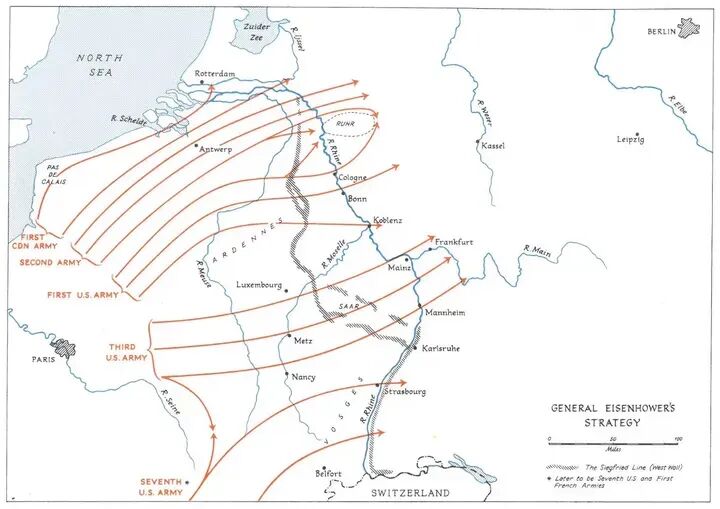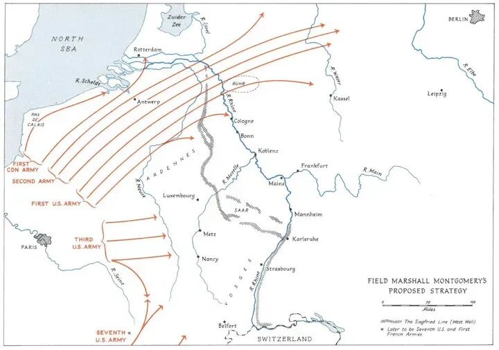 在当月晚些时候,艾森豪威尔再次强化了这个观点,即如果不打开安特卫普港口,大规模地开进“敌人的心脏”是不可思议的。他将不会改用一路突击,因为这让后勤支援线延长的速度快过推进速度。