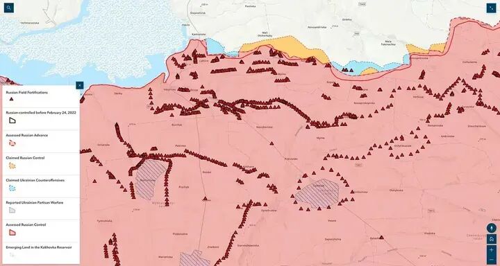 显示俄军安全区和主要防御区的实时地图(来源:ISW)