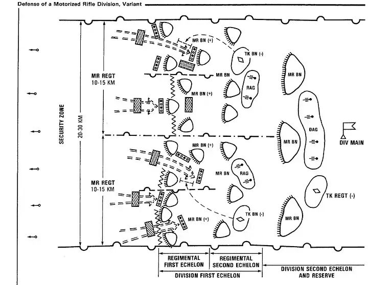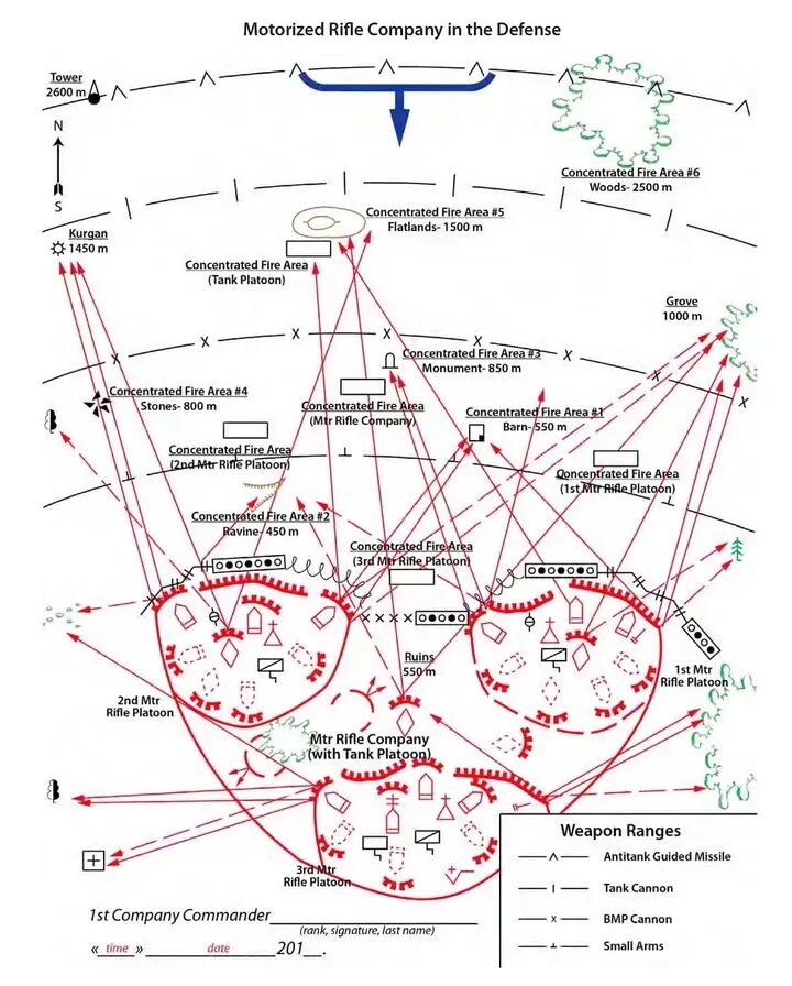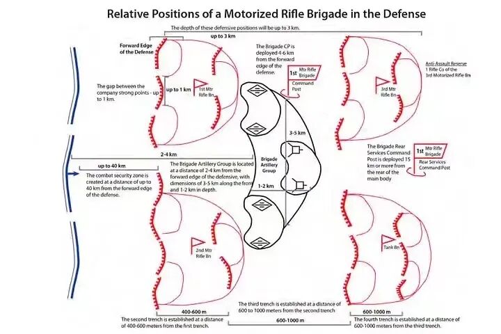 苏联和俄罗斯军事学说值得研究一下,以理解这些防线是如何布置的。每支军队都有某种形式的学说,为如何设计、建造和执行防御机动方案给予指导。我在下面附上苏联和俄罗斯军队的教学范本。它们非常相似。大部分西方军队也有类似的理论,如果你看一下冷战时期北约防御方案,你会看到很多相同的特征。
